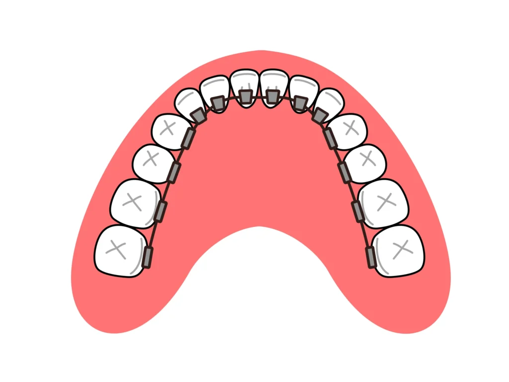 歯の裏側(舌側)にブラケットやワイヤーといった矯正装置を装着して歯を動かすシステムです。