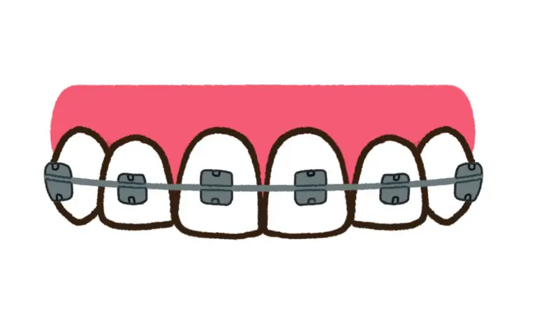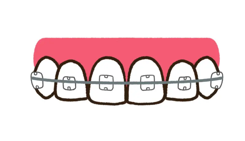 小さな金属の装置を一つひとつ歯面に装着し、そこにワイヤーを通して歯を動かす、最も一般的な矯正装置です。